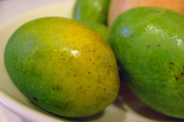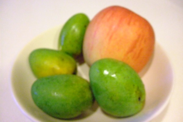 前幾天,鴨寶的媽買了芒果,是小小綠綠的芒果,長這樣↓