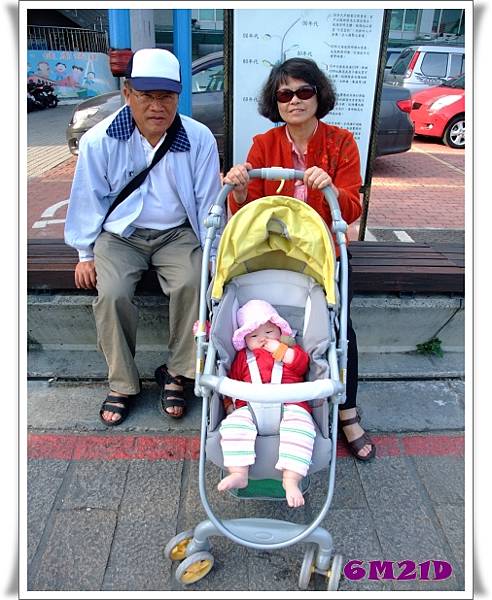 午覺後,一起到河邊走走吹吹風,這是老人家第一次推孫子出門,倆老好開心唷~